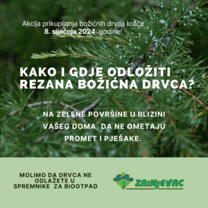 PRIKUPLJANJE REZANIH BOŽIĆNIH DRVCA2.1.2024. - Akcija prikupljanja i odvoza božićnih drvca kreće od ponedjeljka, 8. siječnja 2024. godine.